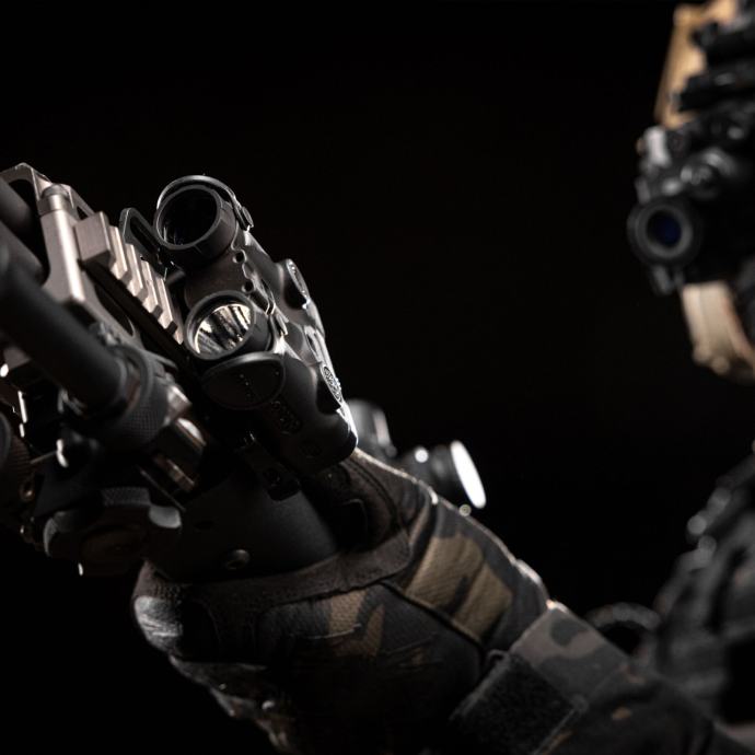 Uređaj dolazi s integriranim QD (Quick Detach) nosačem za Picatinny šinu i dizajniran je da podnese povratni trzaj velikih kalibara. Upravljanje je intuitivno putem stražnjeg selektora načina rada, gumba na kućištu ili priloženog daljinskog prekidača.