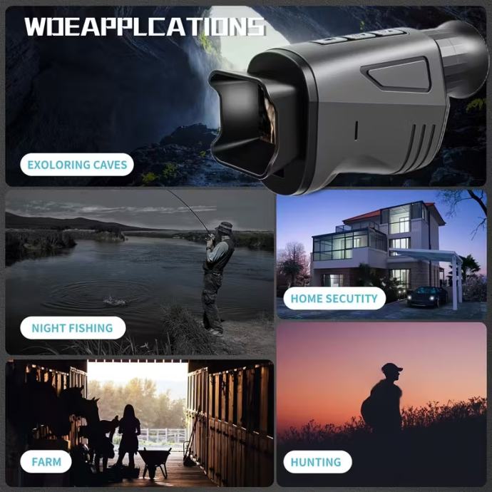 Monokularni noćni vid - mali infra crveni uredjaj kojiosvjetljava noć. Visoka razlučivost 1080P, 16X digitalni zum, 7 razina podešavanja noćnog vida, jasno vidljivi objekti do 300 metara u potpunom mraku. Nezaobilazan alat za noćne aktivnosti.
