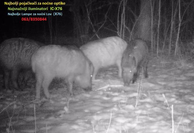 - Ovi IC-X76 pojačivači, divlje svinje i ostale divlje životinje skoro da uopšte ih ne primete! Zato možete slobodno koristiti skoro sve frekvencije ovih X76 bez da budete primećeni. Naravno ako želite ići na vukove ili lovite samo iz blizine (čeke ili sl) onda treba da idete na višlju frekvenciju uz to da vaš noćni uredjaj Night Vision podrži i može očitati tu visoku frekvenciju.