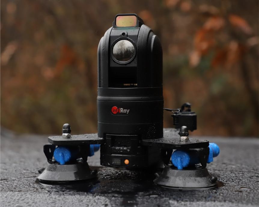 Dizajnirano za montiranje na vozilo za lov, potragu i spašavanje. Daljinsko upravljanje omogućava precizno kretanje i automatsko praćenje putem aplikacije ili joysticka. Prikaz slike putem aplikacije.