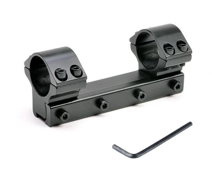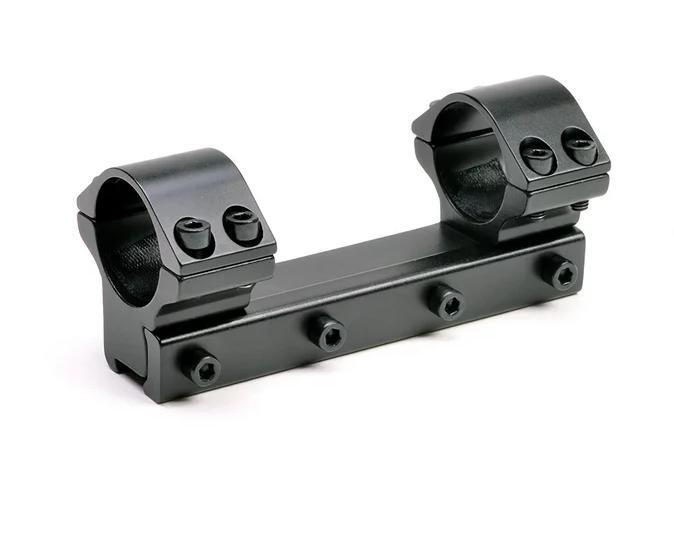 Vrhunski jednodjelni nosač optičkog nišana za upotrebu na teškim klipnim puškama s povratnom oprugom. profil za 25.4 mm - 1" cijevne nišane s prihvatom za prugu / šinu 9 -11 mm, niski bez tunela za nišan