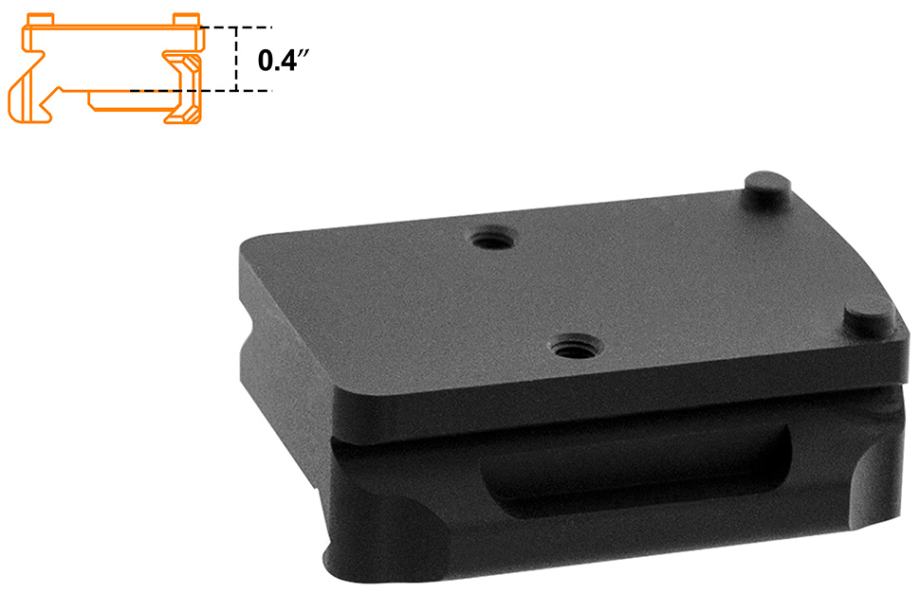 Niski profil sjedala 0,40″ / 10 mm postavlja RMR dovoljno nisko da se postigne ispravno poravnanje nišana na većini pušaka s kundakom koji nije u ravnini s cijevi
