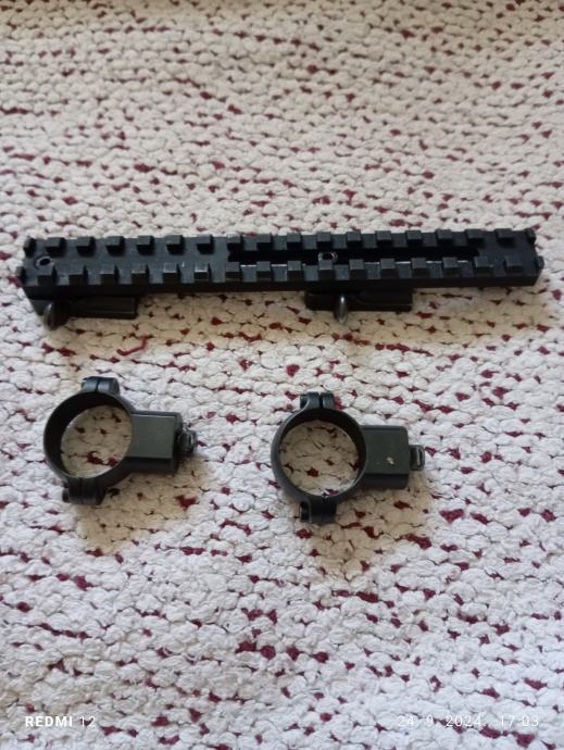Nosać za optike 25.5mm tubusa sa dodatnom picatiny šinom koja odgovara na baze i ima podešavajući razmak.na šinu moguće postaviti druge uređaje!
