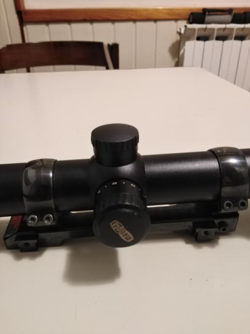 Sačuvana, bez greške, vrhunska slika i boje, garancija tvornice 30 godina, gotovo uz bok velikoj četvorci(Zeiss, S&B, Kahles, Swarowsky), prodaje se bez nosača,končanica 4 sa crvenom točkom, idealna za lov u sumrak i zoru... Odličan izbor i cijena...