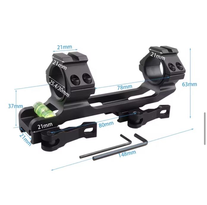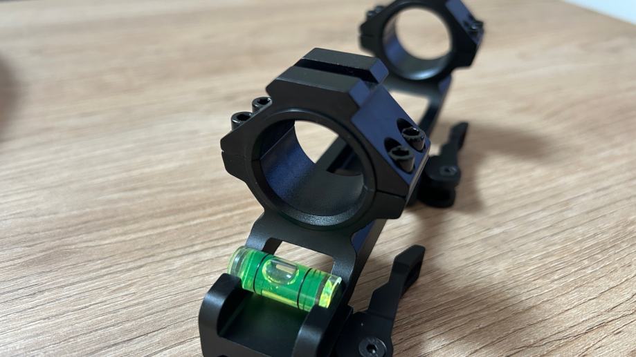 Nosač za optiku s brzim skidanjem. Za optike debljine 25,4 ili 30mm. 20mm picatiny. Novo, nikad montirano, greškom kupljeno. Dimenzije na slici