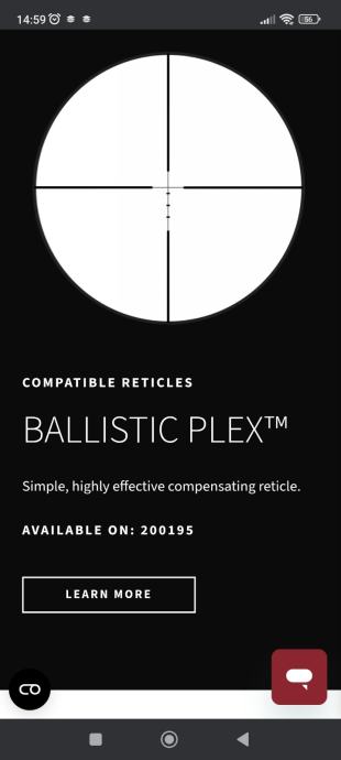 Optika ima balističku končanicu za kalibar .223 i podešavanje paralakse. Na tubusu ima tragove prošle montaže.