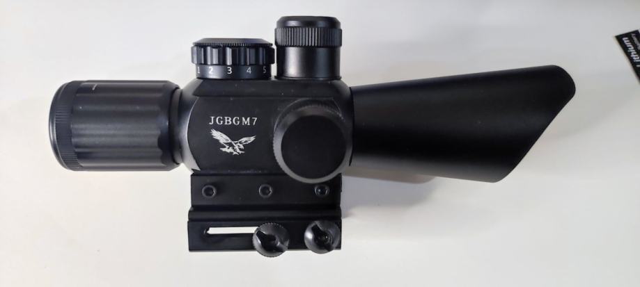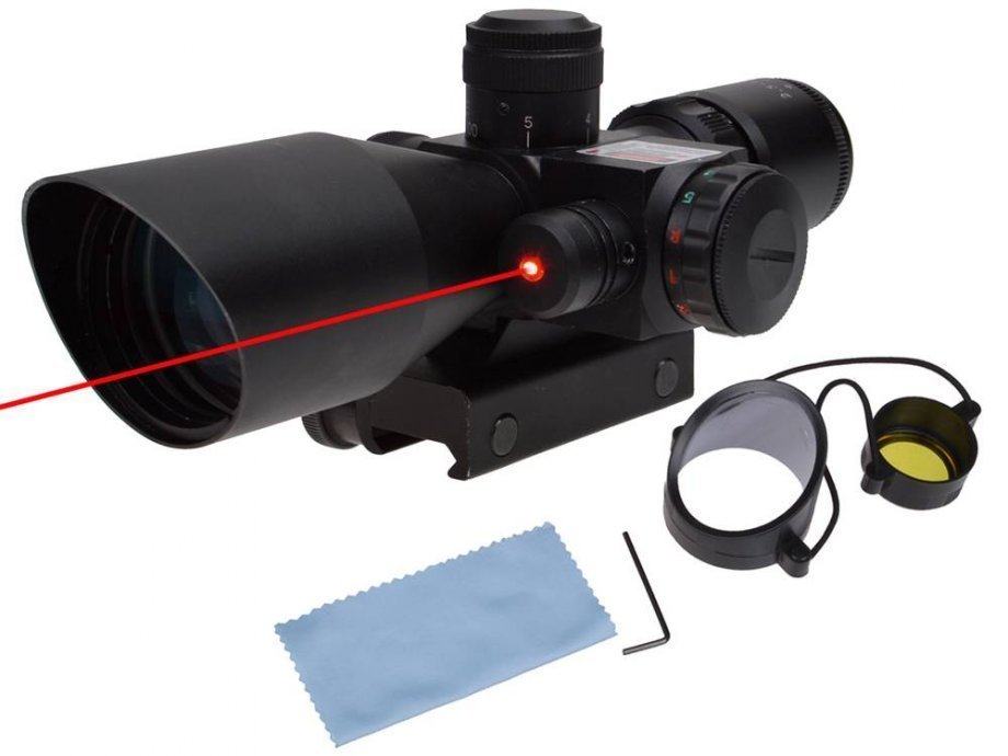 Optika sa laserom (crvena točka) 2.5-10x40 eg uvecanje od 2.5 do 10 puta sa izlaznom lećom 40mm sa ovjetljenjem končanice u zelenoj i crvenoj boji sa 5 razina plus fiksni laser, za puške večeg calibra ili samostrel.