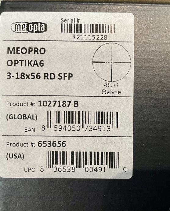 Optika Meopta Meopro 6 3-18x56 RD SFP 4C ,**AKCIJA** Novo u Trgovini