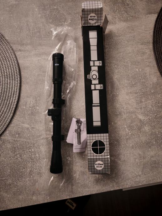 novo, lagana optika sa nosačima za zračnu pušku, nikad korištena. približava 4 puta