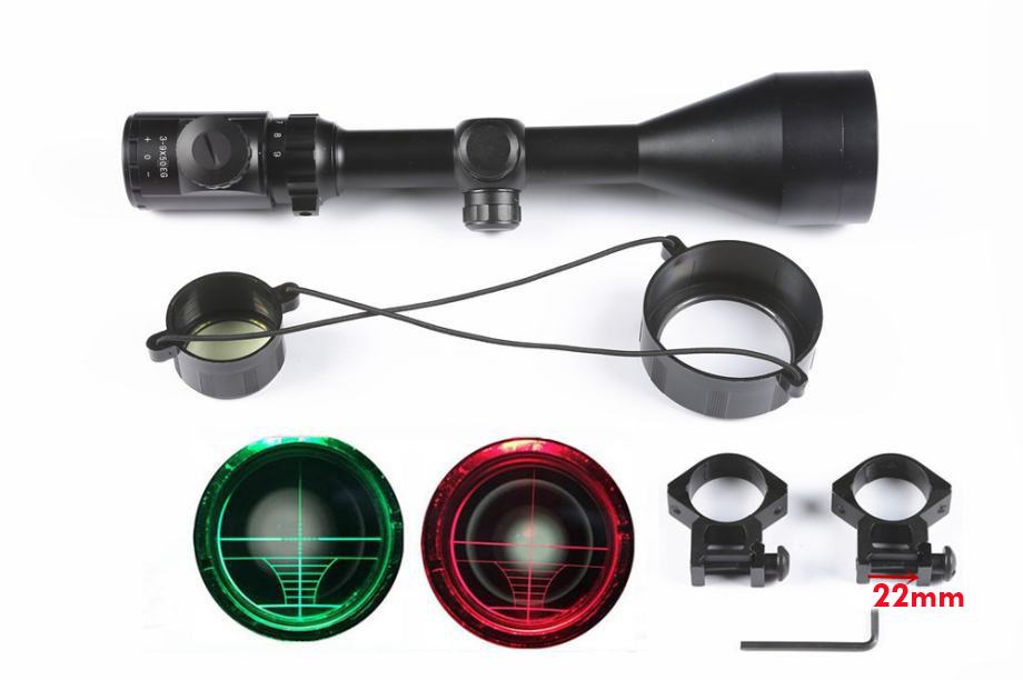 Moderan kompaktan profesionalan lovački ciljnik 3-9X50EG visokih optičkih performansi, odličan kao univerzalni varijabilni ciljnik pogodan za lovačke puške, airsoft te PCP puške. LED osvjetljena končanica u crvenoj ili zelenoj boji sa podešavanjem jačine osvjetljenja u 5 moda. U kompletu sa nosačima za šinu 22mm.