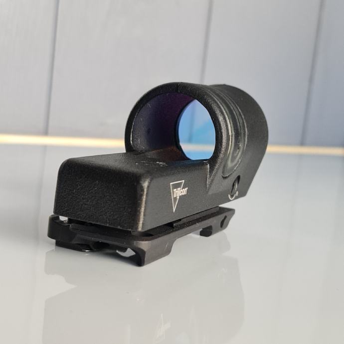 Ciljnik Reflex je sustav ciljnika kompatibilan s više platformi koji se lako može pričvrstiti na većinu modernog vatrenog oružja. Ovaj konkretni RX34 konfiguriran je s dvostruko osvijetljenom jantarnom točkastom končanicom od 4,5 MOA i Picatinny kompatibilnim RX23 A.R.M.S. nosačem.