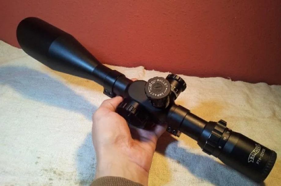Vrhunska optika walther ft uvećanja 8-32 velicine objektiva 56mm, sa mogučnošču izoštravanja slike pomoću paralakse te tako približno dokučiti o kojoj udaljenosti gdje je meta je riječ