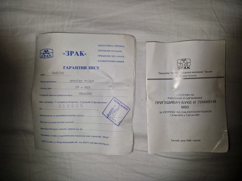 Optički nišan je namijenjen za puške 7,9 mm M76, 7,62 mm M91 i snajper M93 (Crna strijela).