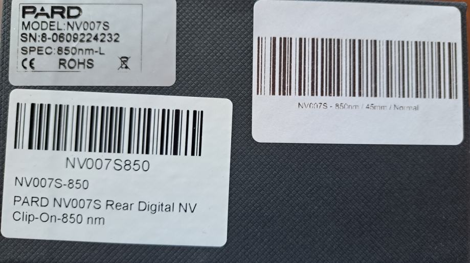 Prodajem Pard NV007S. Novi 007S model manji je i kompaktniji od starog modela. Dolazi sa USB kabelom za punjenje i punjivom baterijom (18650). U paketu dolazi 45 mm adapter za montiranje na dnevnu optiku te 1, 2 i 3 mm prstenovi. Kupljen 04/2023, garancija na uređaj je dvije godine. 850 tip iluminatora. Montiran jednom na pušku i jednom korišten, od tada spremljen u kutiji, stanje novo, cijena 400e