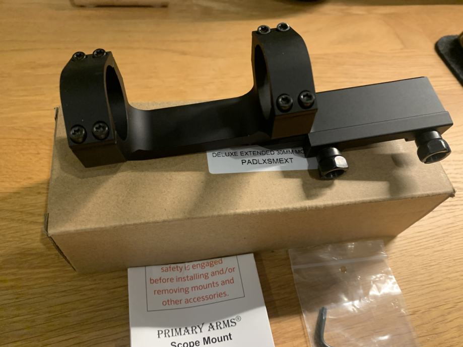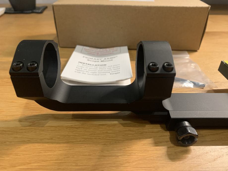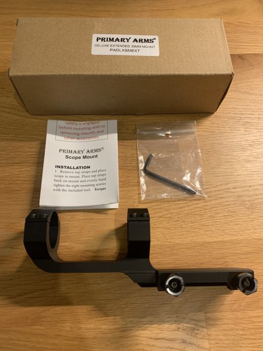 Prodajem navedeni Primary Arms nosač, promjer prstena 30mm, visina montiranja centra optike 1.5inch iznad šine.
