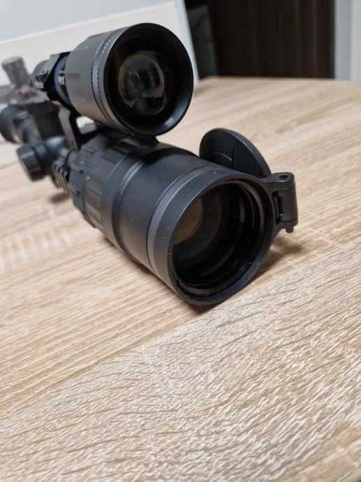 Optika vrlo malo korištena, kao nova nema ogrebotine, ispravna. Kupljena nova u trgovini (plaćena 1100 eura). Na njoj dodatni iluminator 850nm/940nm/LED, iluminator također kupljen novi u trgovini (plaćen 170 eura). Bez brzoskidajućih nosača.