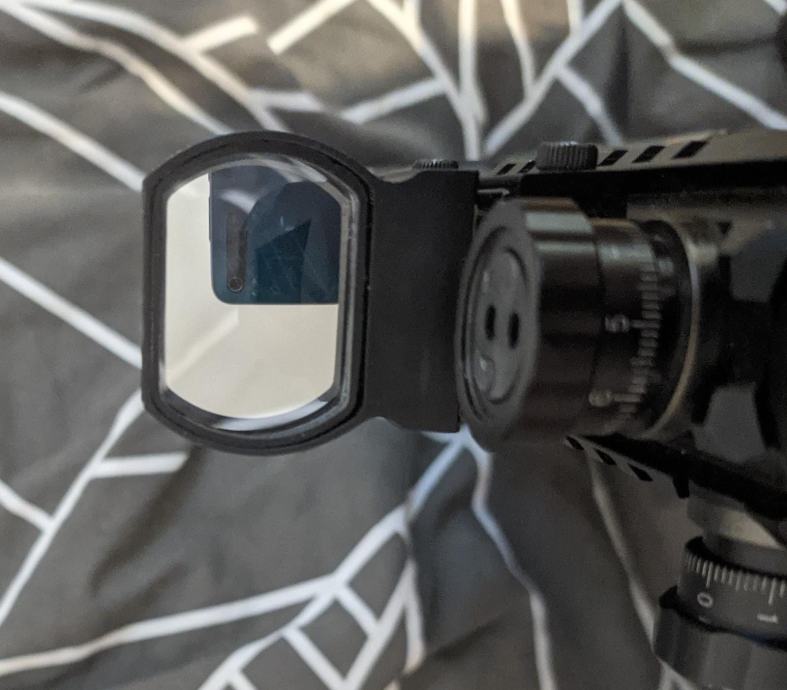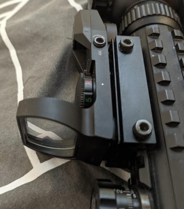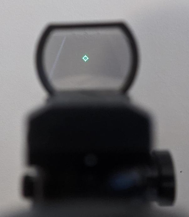 Potpuno ispravni red dot sight, ima mijenjanje oblika ciljnika i mijenjanje boje (crveno i zeleno) i jačine. Ima i windage/elevation za namjestiti da točno padaju runde gdje točka pokazuje.