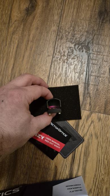 Prodaje se red dot sa slike. Radi se o originalnom VectorOptics te je korišten na pištolju. Red dot normalno radi te odlično podnosi trzaje 9mm. Nema oštećenja. Dolazi sa nosačima za instaliranjem na pištolj ili na picatinny šinu.