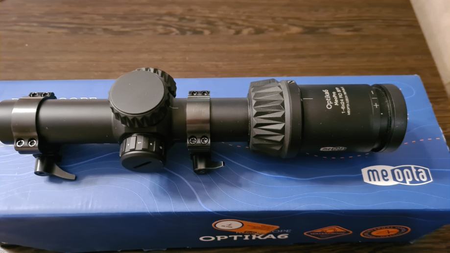 Prodajem širokokutnu optiku MeoPro optika 6, 1-6x24 RD SFP. Optika je stara godinu dana i u odličnom stanju. Uz optiku se prodaju nosači i prstenovi predviđeni za montažu na Picatinny šinu.