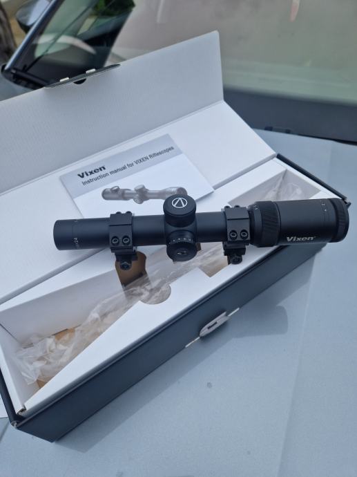 Optika vixen 1-6x24 očuvana korištena 2 sezone i od tada stoji u ormaru,proizvedena u japanu končanica sa točkom u sredini prodajem ili mijenjam za optiku većeg okulara 56 mm.Sve se možemo dogovoriti ako je ponuda realna.