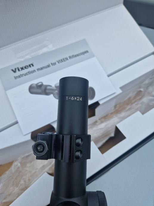 Optika je očuvana korištena jednu sezonu i stoji u ormaru ima točku u sredini križa.Cijena je 550 eura sa nosačima .