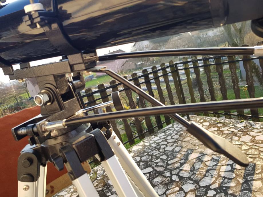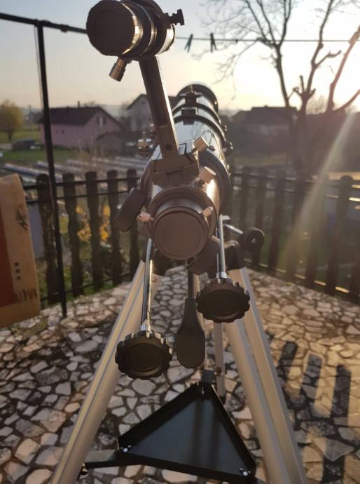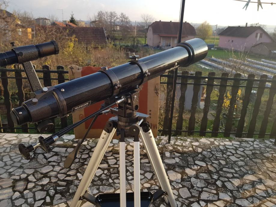 Teleskop je u odličnom kozmetičkom i funkcionalnom stanju. Dolazi na AZ3 montaži te je jednostavan za korištenje. Ugradio sam na montažu i dodatnu ručicu koja omogučava grubo pomicanje teleskopa gore/dolje, lijevo/desno. za fino pomicanje i praćenje objekta u vidnom polju imate male ručice. Uz teleskop dajem i dodatne okulare tipa Plossl 6mm, SW Plossl 10mm te Kellner 20mm. Uz teleskop ide i dobar tražioc 6X30mm te prizma koja okreće sliku realno! Dolje imate i par slika na kojima možete vidjeti što možete očekivati! Ne šaljem poštom, mogu teleskop dostaviti do Križevaca, Đurđevca! Možemo korigirati cijenu ako dođete sami po teleskop!