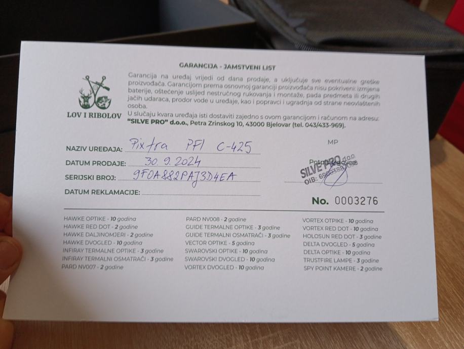 Vrsta detektora Vanadij oksid nehlađeni detektor u žarišnoj ravnini