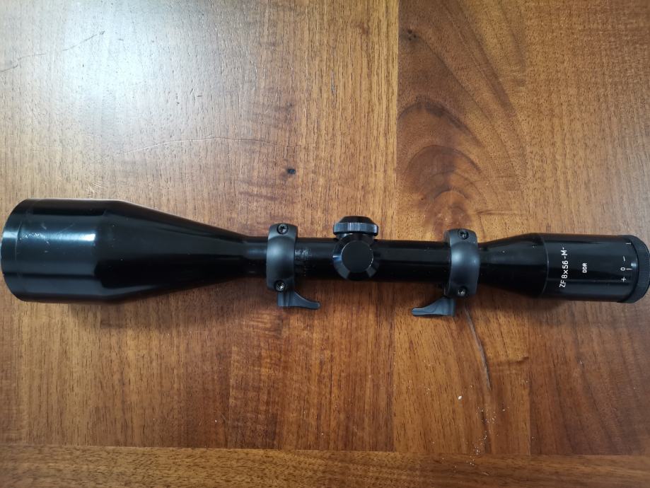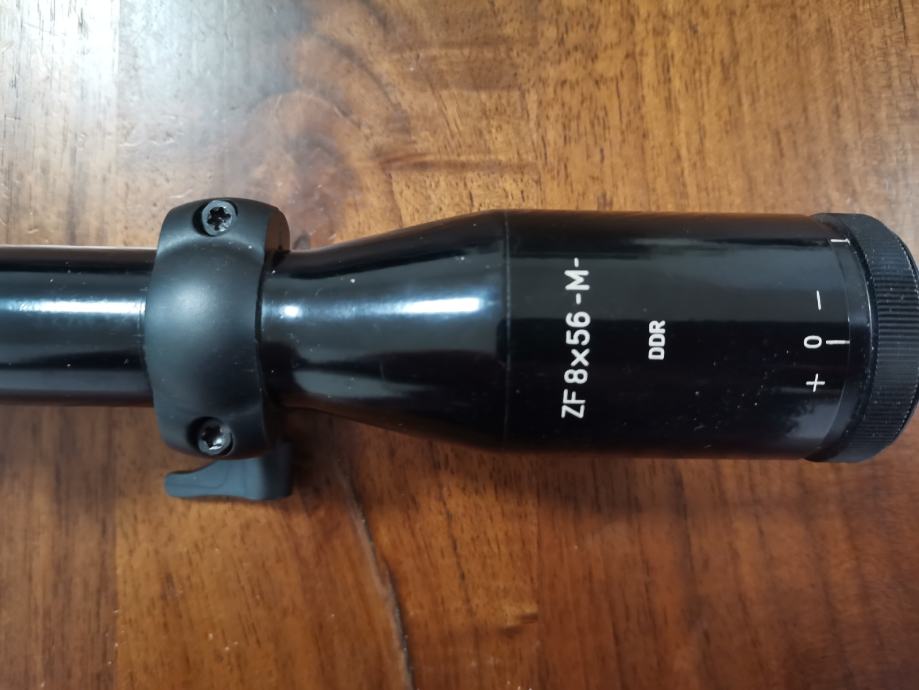 Prodajem optiku Zeiss Jena 8x56 M (proizvodnja DDR, nasljednik Zeiss Jene je Docter, a Doctera sadašnji Noblex), končanica broj 1 (T), leće bez ogrebotina, tubus 25,7 mm, brzoskidajuća monataža sa picatinny prihvatom, odlična optika za lov dočekom i piršom, izuzetna vidljivost u slabim svjetlosnim uvjetima.