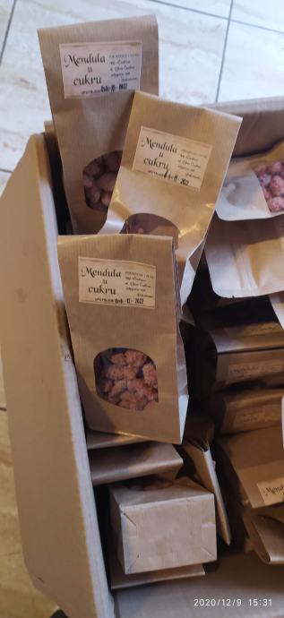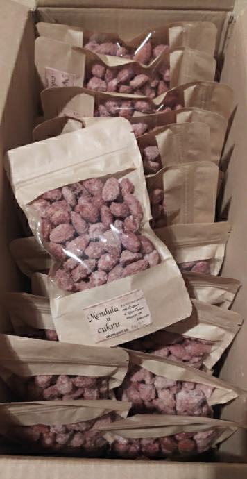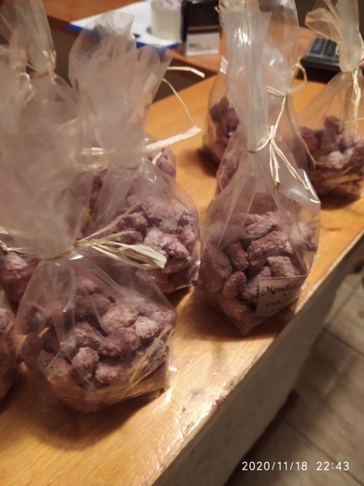 Ušećereni badem proizvodimo od jezgre iz vlastitog eko uzgoja. Sorte Texas i Tuono.