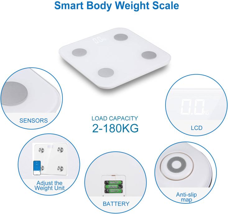Dobro upoznajte svoje tijelo uz pomoć Bluetooth Smart Body Scale. Ne samo da prati vašu težinu, već i tjelesnu masnoću, visceralnu masnoću te mišićnu i koštanu masu. Štoviše, prenosi vaše podatke u aplikaciju MEGAFIT na vašem mobitelu putem Bluetooth veze, tako da možete imati jasan pregled promjena u težini i svakog napretka. Sa svojom elegantnom staklenom pločom i velikim zaslonom, osmišljen je kako bi vam donio prekrasno iskustvo vaganja. Elegantan moderan dizajn savršeno će se uklopiti u svaki kućni prostor.