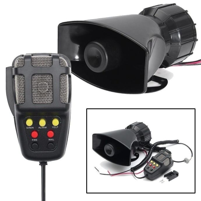 Ova automobilska sirena nudi 7 sjajnih zvukova; tradicionalna truba, zvonjenje protupožarnog alarma, zavijanje kola hitne pomoći, zavijanje policijske sirene, jasan prometni zvuk itd. Ima već ožičeni mikrofon s gumbom za razgovor i ABS zvučnik otporan na vremenske uvjete od 100 W.