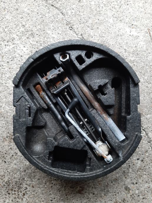 Prodajem alat za auto koji se stavlja na rezervni kotač. Unutra je dizalica, odvijač za vijke kotača i kuka za šlepanje.