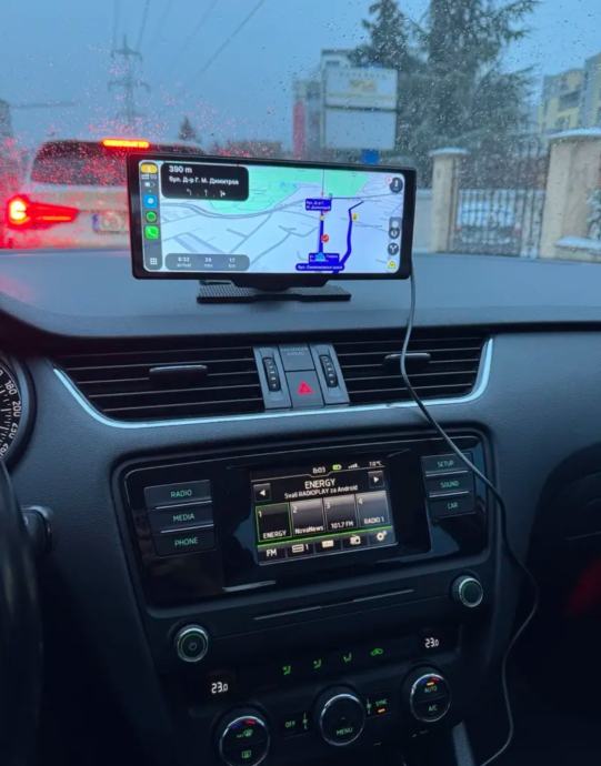 Novo zapakirano. Odgovara za sve automobile. Napaja se na orikljucak upaljaca. Ima kablic za aux i spaja se u sekundi. Ako zelite android carplay ekran ovo je super stvar za gledanje videa, navigaciju i sve aplikacije koje koristite na svom telefonu. Idealno i za taxi navigaciju .