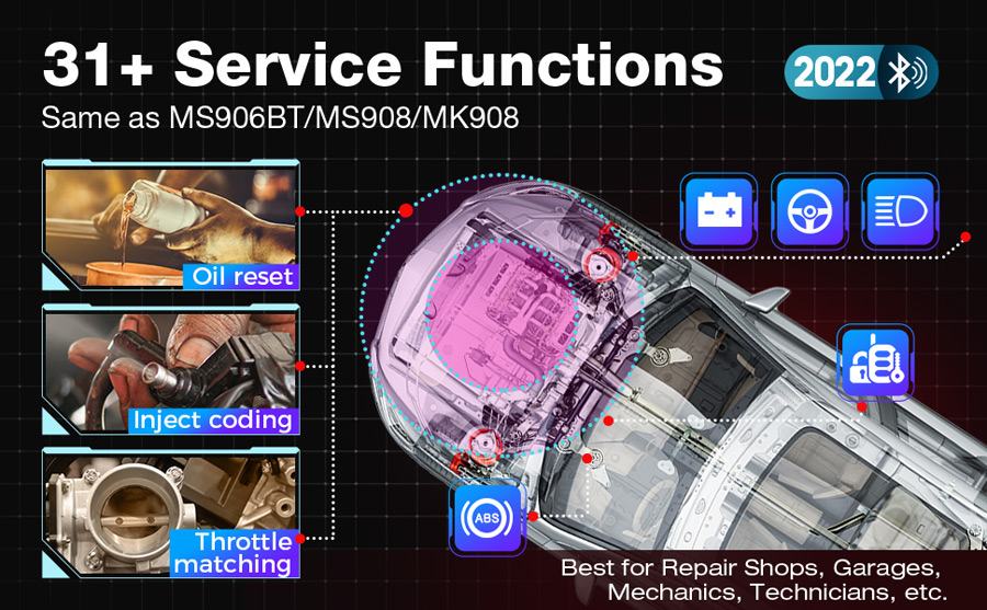 MS906S dijagnostički skener automobila ima 31 funkciju resetiranja, potpuniji raspon za popravak i održavanje vozila, zadovoljavajući sve potrebe tehničara.