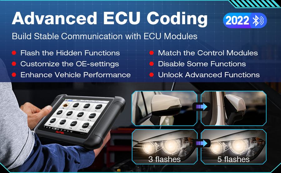 Fleshajte skrivene značajke kako biste onemogućili neke dosadne funkcije ili otključali vrhunske značajke automobila kao što su: Auto Start-stop, Retrovizori s nagibom, sklopivi retrovizori, Prilagodba unutarnjih svjetala, Promjena zvona, Aktivacija kutnih svjetala sa svjetlima za maglu, Deaktivacija nekih zvukova zujanja , Isključite dnevna svjetla u američkom stilu, itd.
