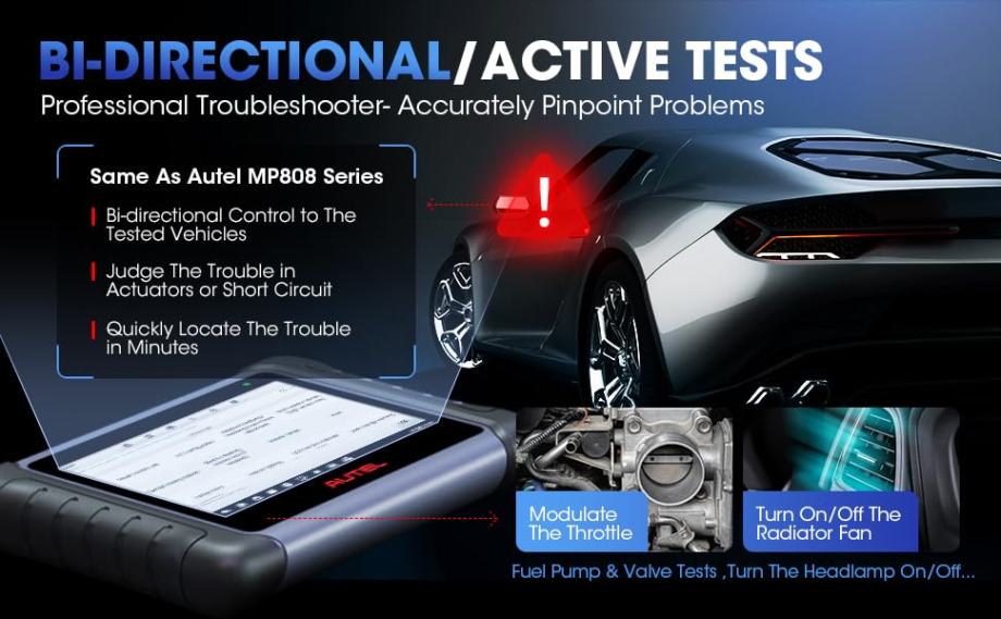 Kako bi profesionalnim mehaničarima pružio pravi vodeći skener, od 1. lipnja 2022. Autel MaxiCOM MK808 opremljen je naprednim dvosmjernim (aktivnim testom) koji je moguć samo za skupe automatske skenere.