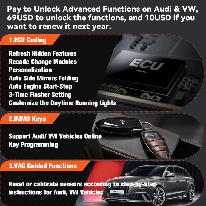 * Pretplatite se na napredne značajke Volkswagena i Audija uključujući online kodiranje, online IMMO i obnovu skrivenih funkcija (potrebna kupnja putem aplikacije)
