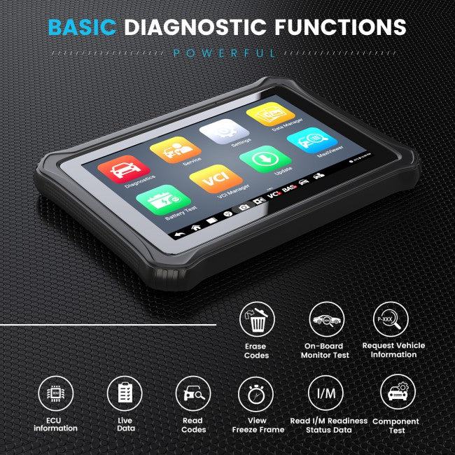 Potpune mogućnosti za kodove, podatke uživo, aktivno testiranje, ECU informacije, prilagodbu, usklađivanje itd
