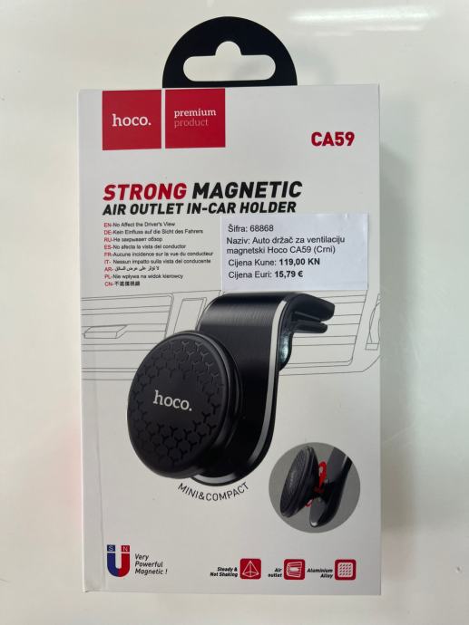 Magnetski držač za auto – HOCO CA59. Omogućuje vam sigurno pričvršćivanje uređaja. To utječe na udobnost i sigurnost vožnje. Montira se na ventilaciju.