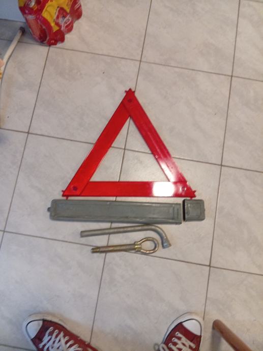 Osnovna auto oprema,trougao,kljuc za tockove i kuka za vucu.Izvadjeno iz Wolsvagen Polo.
