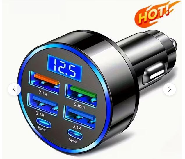 Auto Punjač s Brzim Punjenjem USB-C | Dual PD+QC3.0, 4 USB Porta s Displejem, Izdržljiva Konstrukcija.