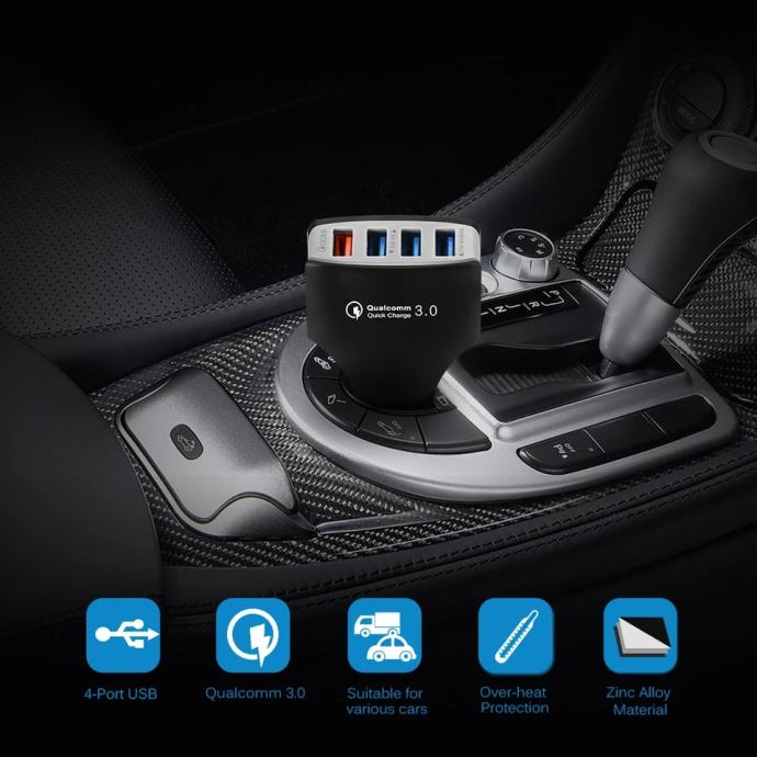 - Qualcom auto punjač visoke kvalitete, quick charge, s 4 USB-a