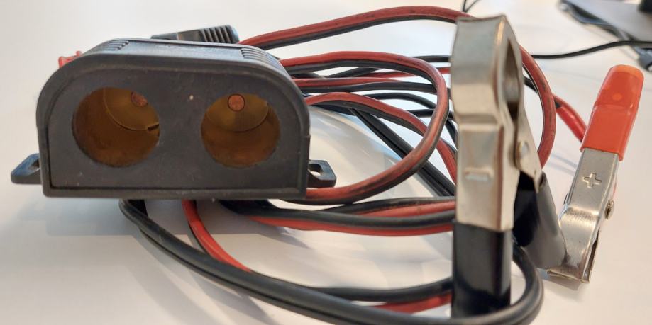 Ispravan, ukupna dužina cca 2.5 m. Moguće ga je spojiti direktno na akumulator ili u autu na utičnicu, sve vidljivo na slikama. Osobno preuzimanje ili šaljem hp preporučeno ili tisak, ne šaljem plačanje pouzečem.