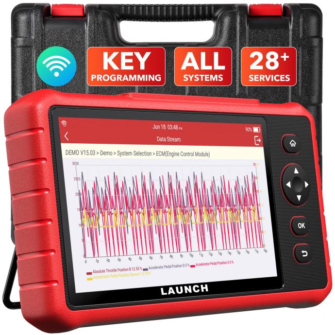 Launch CRP909X autodijagnostika je najmodernija dijagnostika u ovoj seriji. Obavlja potpunu dijagnostiku sustava i podržava resetiranje 16 servisnih funkcija. Omogućuje LCD zaslon osjetljiv na dodir s operativnim sustavom Android 7.1 s 2 GB RAM-a i 16 GB interne memorije za besprijekoran rad. Zahvaljujući kvalitetnoj i snažnoj bateriji uređaj izdrži 10 sati neprekidnog rada. Jednostavno ažuriranje jednim klikom putem WiFi-ja. Zasigurno postoje i druge značajke, kao što su dijeljenje podataka i ispis podataka. Osim toga, 2 godine besplatnih online ažuriranja sustava.