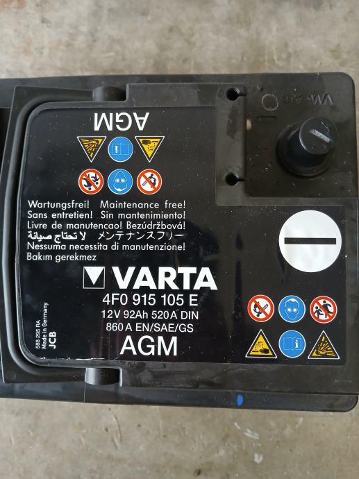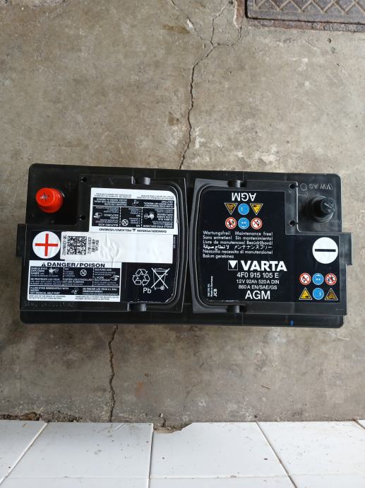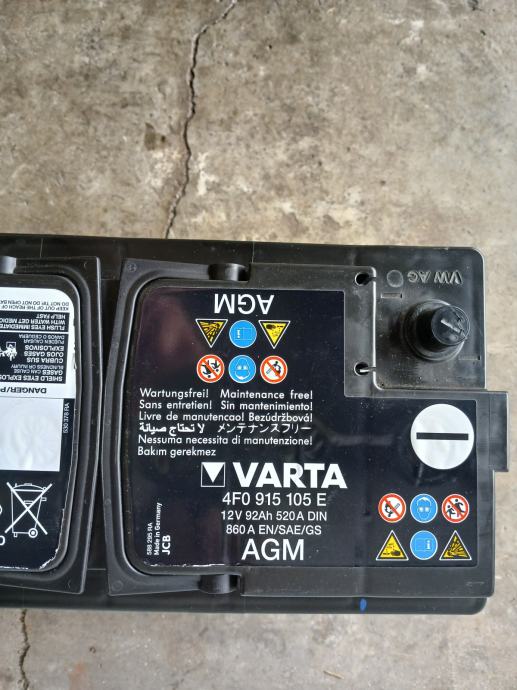 Baterija originalna za audi a4 2.0 tdi iz 2012 kapacitet 12.5 V 92Ah ispravno izvađen iz navedenom slika 1-2-3
