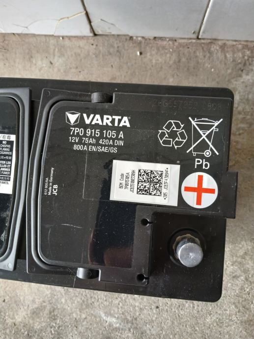 Baterija originalna za audi a4 2.0 tdi iz 2017 kapacitet 12.5 V 75Ah ispravno izvađen iz navedenog slika 4-5-6