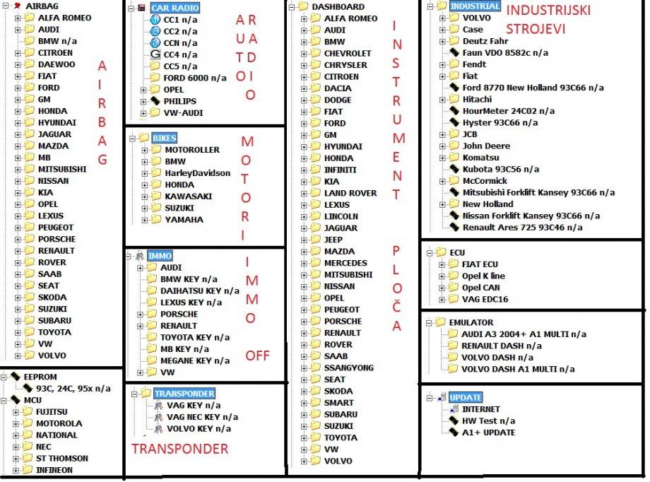 Automobili, Airbag, Auto radio, navigacije, motorole, eeprome MCU-e, procesore, instrument table, Kilometre, radne sate, traktor, kamion, Marina, jako puno eeproma može očitavati i mjenjati podatke na istima i reprogramirati!!!
