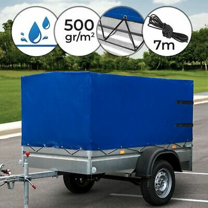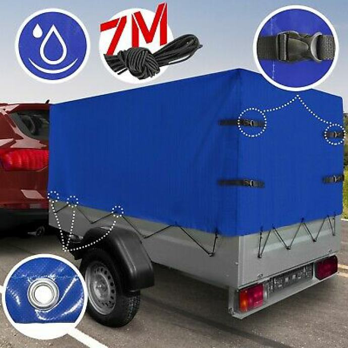 Zaštitite svoju robu tijekom transporta našom ceradom za prikolice. To je dodatak koji svaki vlasnik prikolice treba zaštititi teret od svih elemenata i mogućih kvarova tijekom transporta. Svaka je strana ojačana aluminijskim okruglim ušicama od 12 mm tako da možete elastičnim užetom pričvrstiti ceradu na prikolicu. Stražnji dio poklopca ima četiri pričvrsne trake koje učvršćuju robu i omogućuju jednostavan pristup za (ne) utovar.