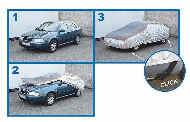 Lako pričvršćivanje cerade - stavlja se samo na auto, pri dnu se dio sa ušivenom gumom pričvršćuje odgovarajućim naborima karoserije/odbojnika, a prednji i stražnji dio cerade se temeljito pričvršćuje ušivenim remenima s kopčama.