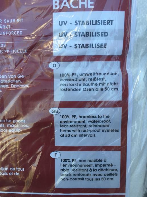 Prodajem BIJELU ceradu 140 g/m2 dimenzija 10x6 m (+/- 5%). Ima alkice za vezanje na cca svakih 50 cm.